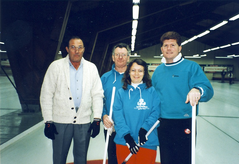 We didn’t win that year, nor did I win in the next few years. But my subsequent years’ skips were Mary Susan Bell who had been on Heather Houston’s team, Ian Tetley and a player from the Danish women’s world team – I still have the pin she gave me. I proudly wear my Curl for Kids sweatshirts to this day.